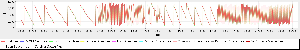 avg(total free) = 2012.22 avg(PS Old Gen free) = 0.00 avg(CMS Old Gen free) = 1991.21 avg(Tenured Gen free) = 0.00 avg(Train Gen free) = 0.00 avg(PS Eden Space free) = 0.00 avg(PS Survivor Space free) = 0.00 avg(Par Eden Space free) = 20.95 avg(Par Survivor Space free) = 0.06 avg(Eden Space free) = 0.00 avg(Survivor Space free) = 0.00