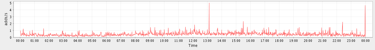 max(GetMsgRequest) = 861.00 max(GetAppointmentRequest) = 827.00 max(SearchRequest) = 96.00 max(SearchConvRequest) = 67.00 max(MsgActionRequest.delete) = 27.00 max(ConvActionRequest.trash) = 63.00 max(SetAppointmentRequest) = 63.00 max(NoOpRequest) = 57.00 max(GetFolderRequest) = 54.00 max(SyncRequest) = 75.00