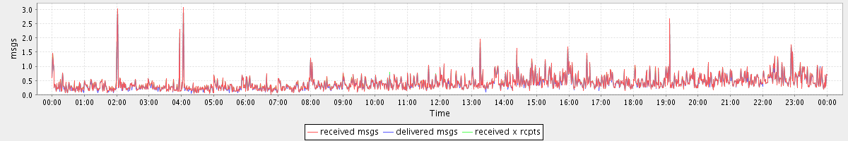 avg(received msgs) = 0.41 avg(delivered msgs) = 0.40 avg(received x rcpts) = 0.41