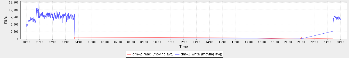 avg(dm-2 read) = 0.46 avg(dm-2 write) = 335.41