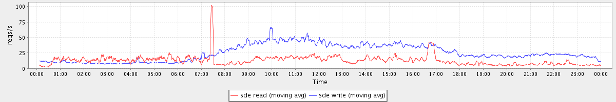 avg(sda1 read) = 26.55 avg(sda1 write) = 44.24