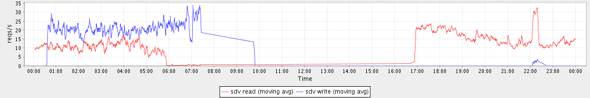 avg(sda read) = 2.08 avg(sda write) = 2.87