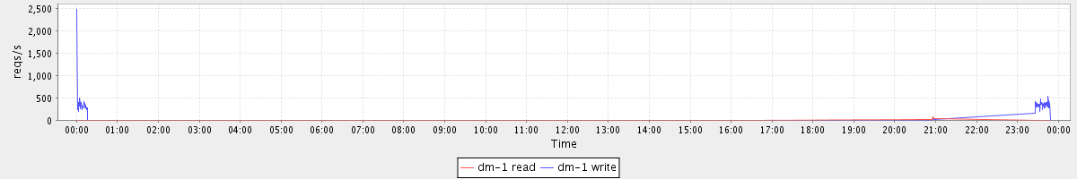 avg(dm-1 read) = 0.47 avg(dm-1 write) = 38.45