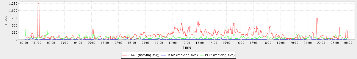 Host zm05.stanford.edu: Mailboxd: Response Time by Client Protocol