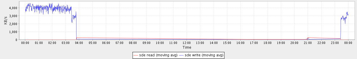 avg(sda read) = 0.80 avg(sda write) = 22.40