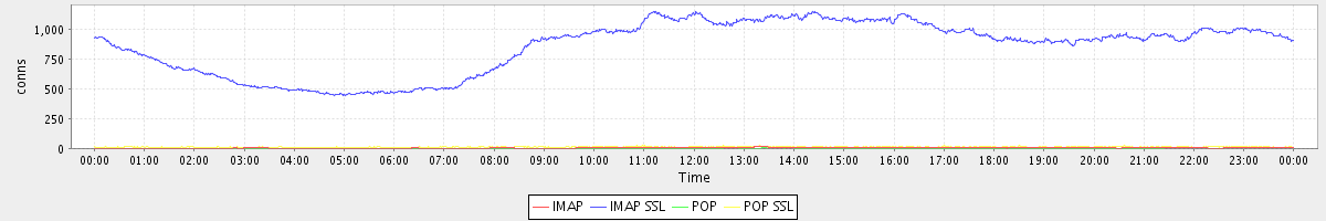 avg(IMAP) = 5.23 avg(IMAP SSL) = 852.85 avg(POP) = 0.38 avg(POP SSL) = 12.21