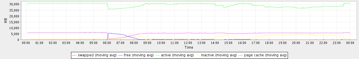 avg(swapped) = 0.25 avg(free) = 414.79 avg(active) = 29308.66 avg(inactive) = 1709.41 avg(page cache) = 5375.42