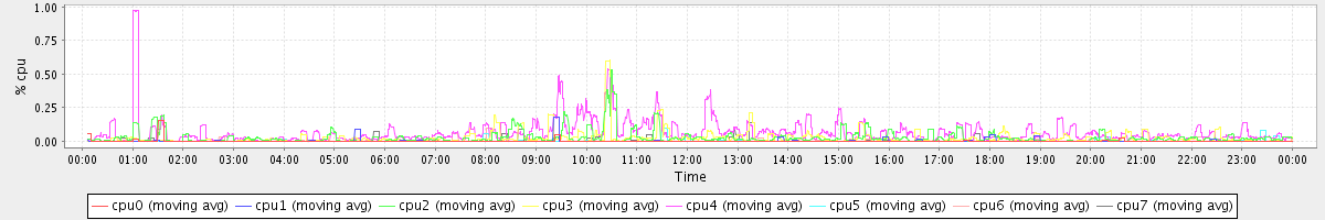avg(cpu0) = 0.45 avg(cpu1) = 0.31 avg(cpu2) = 0.21 avg(cpu3) = 0.25 avg(cpu4) = 0.17 avg(cpu5) = 0.12 avg(cpu6) = 0.12 avg(cpu7) = 0.11