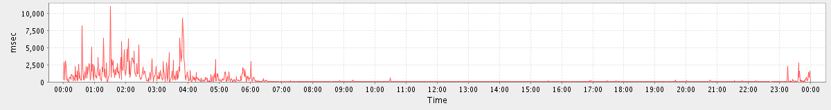 avg(AutoCompleteGalRequest) = 21228.18 avg(SyncGalRequest) = 30998.16 avg(FolderActionRequest.delete) = 1445.75 avg(SearchGalRequest) = 26506.41 avg(DeleteAccountRequest) = 2728.50 avg(BackupRequest) = 333568.00 avg(FolderActionRequest.empty) = 3570.34 avg(SendInviteReplyRequest) = 1023.02 avg(BackupQueryRequest) = 953.80 avg(GetQuotaUsageRequest) = 3288.00