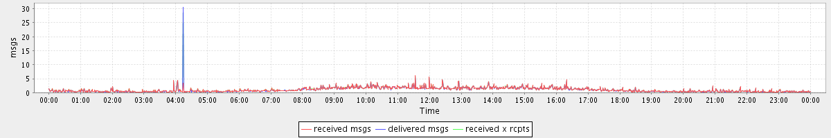 avg(received msgs) = 1.04 avg(delivered msgs) = 1.01 avg(received x rcpts) = 1.06
