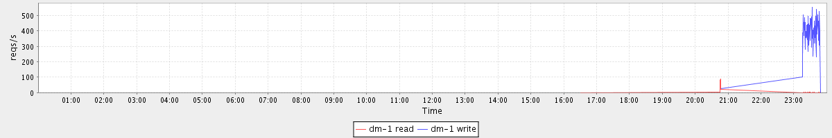 avg(dm-1 read) = 0.09 avg(dm-1 write) = 9.03
