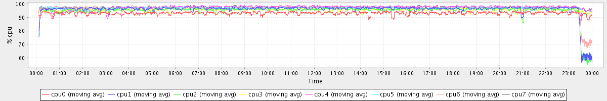 avg(cpu0) = 93.05 avg(cpu1) = 95.53 avg(cpu2) = 94.67 avg(cpu3) = 95.49 avg(cpu4) = 97.07 avg(cpu5) = 96.50 avg(cpu6) = 96.55 avg(cpu7) = 97.04