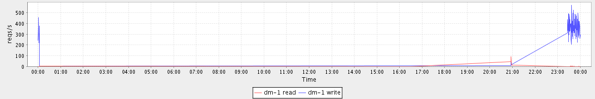 avg(dm-1 read) = 0.41 avg(dm-1 write) = 38.87