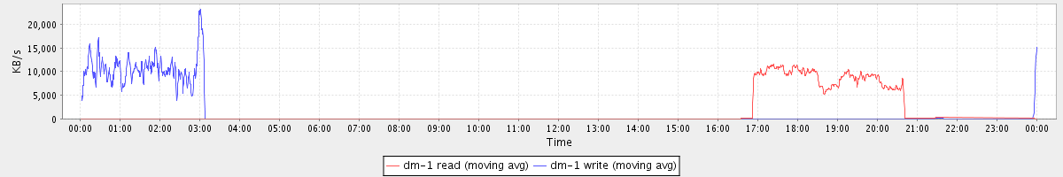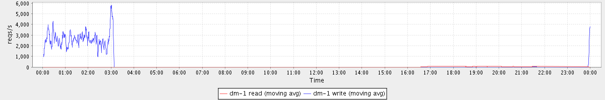 avg(dm-1 read) = 14.56 avg(dm-1 write) = 352.53