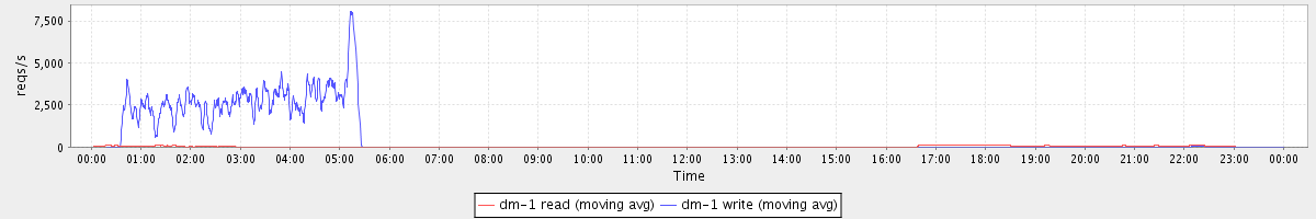 avg(dm-1 read) = 27.92 avg(dm-1 write) = 545.54