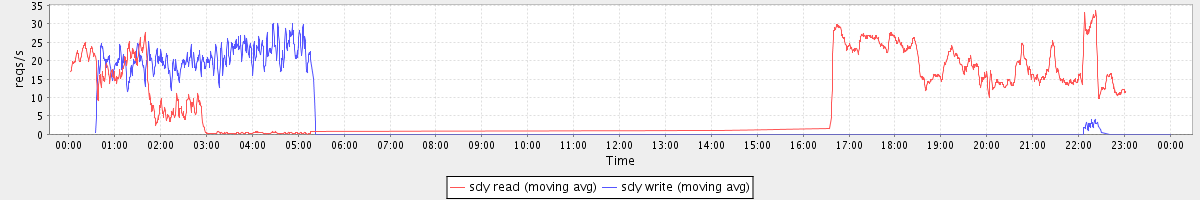 avg(sda read) = 19.86 avg(sda write) = 46.77