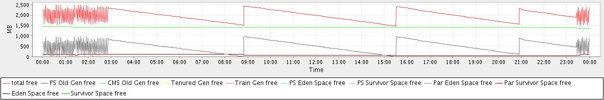 avg(total free) = 1971.04 avg(PS Old Gen free) = 0.00 avg(CMS Old Gen free) = 1403.33 avg(Tenured Gen free) = 0.00 avg(Train Gen free) = 0.00 avg(PS Eden Space free) = 0.00 avg(PS Survivor Space free) = 0.00 avg(Par Eden Space free) = 492.34 avg(Par Survivor Space free) = 75.37 avg(Eden Space free) = 0.00 avg(Survivor Space free) = 0.00