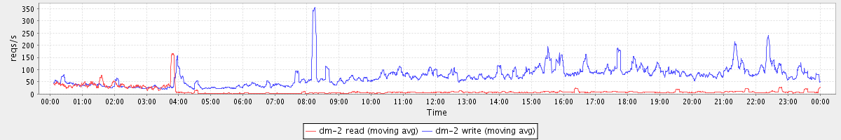 avg(dm-1 read) = 2.79 avg(dm-1 write) = 1808.00