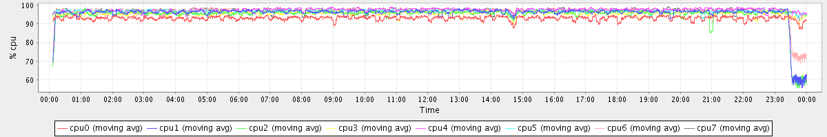 avg(cpu0) = 92.98 avg(cpu1) = 95.38 avg(cpu2) = 94.75 avg(cpu3) = 95.39 avg(cpu4) = 97.23 avg(cpu5) = 96.62 avg(cpu6) = 96.49 avg(cpu7) = 97.02