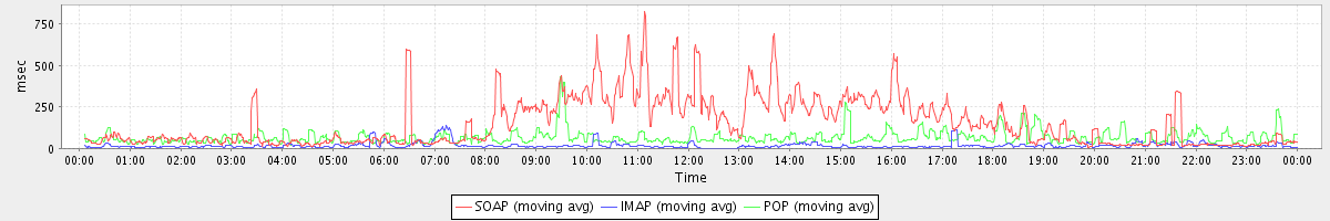 Host zm05.stanford.edu: Mailboxd: Response Time by Client Protocol
