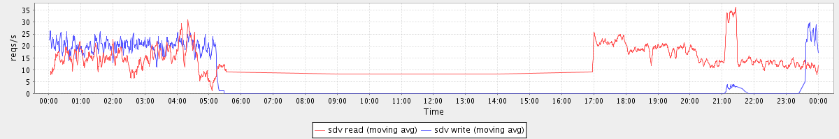 avg(sda read) = 29.03 avg(sda write) = 53.67