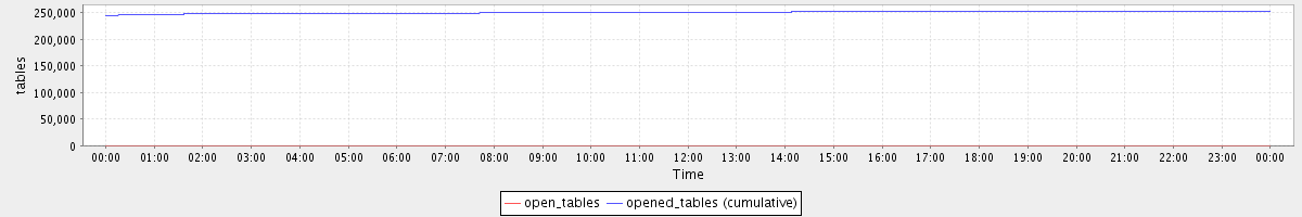 avg(open_tables) = 397.00 avg(opened_tables (cumulative)) = 250897.56