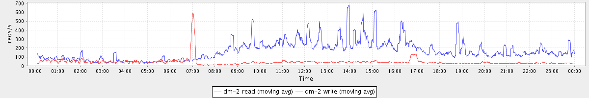 avg(dm-0 read) = 3688.77 avg(dm-0 write) = 424.72