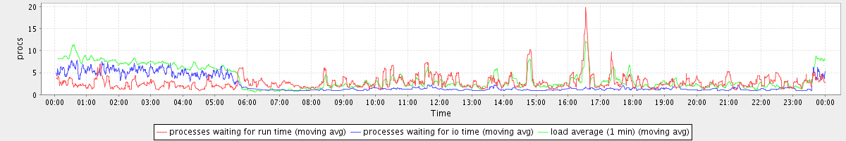 avg(processes waiting for run time) = 1.81 avg(processes waiting for io time) = 1.64 avg(load average (1 min)) = 3.66