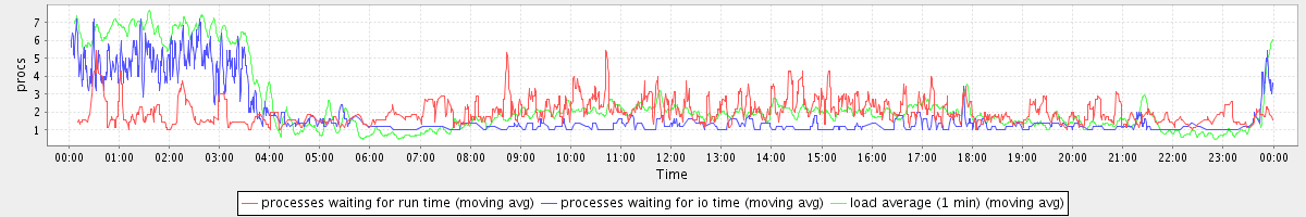 avg(processes waiting for run time) = 1.09 avg(processes waiting for io time) = 1.09 avg(load average (1 min)) = 2.41