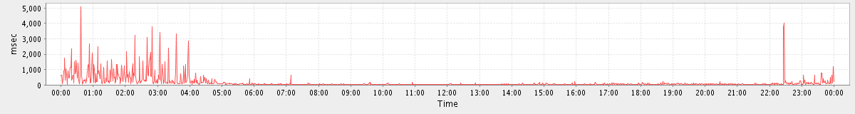 avg(AutoCompleteGalRequest) = 864.14 avg(SyncGalRequest) = 1630.41 avg(BackupQueryRequest) = 457.80 avg(SearchGalRequest) = 308.33 avg(GetQuotaUsageRequest) = 3252.00 avg(ConvActionRequest.delete) = 388.07 avg(SendMsgRequest) = 273.81 avg(BackupRequest) = 356365.00 avg(FolderActionRequest.empty) = 8105.42 avg(FolderActionRequest.read) = 564.43
