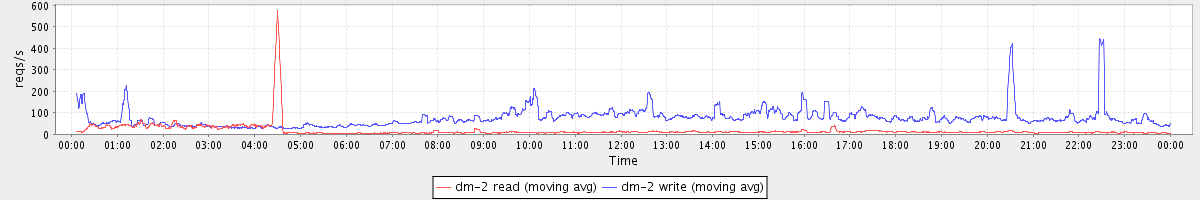 avg(dm-2 read) = 437.66 avg(dm-2 write) = 592.13