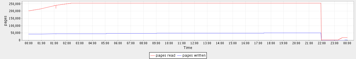 avg(pages read) = 231168.40 avg(pages written) = 43362.18