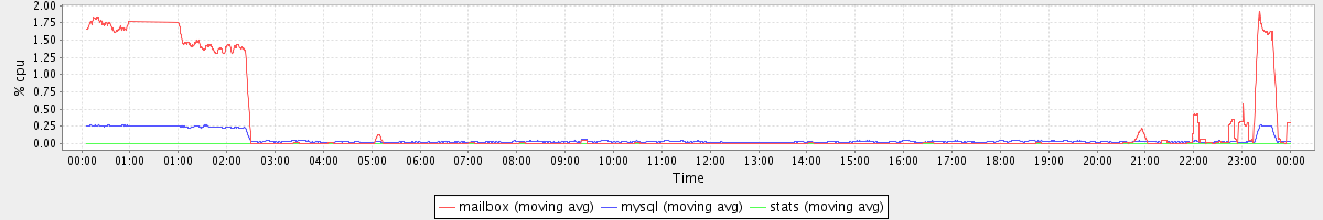 avg(mailbox) = 0.25 avg(mysql) = 0.06 avg(stats) = 0.00