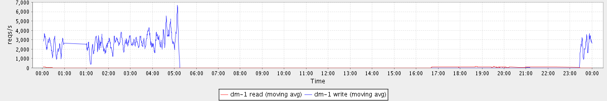 avg(dm-1 read) = 1616.74 avg(dm-1 write) = 2822.96