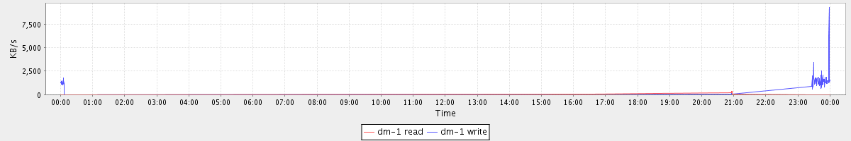 avg(dm-1 read) = 0.43 avg(dm-1 write) = 45.42