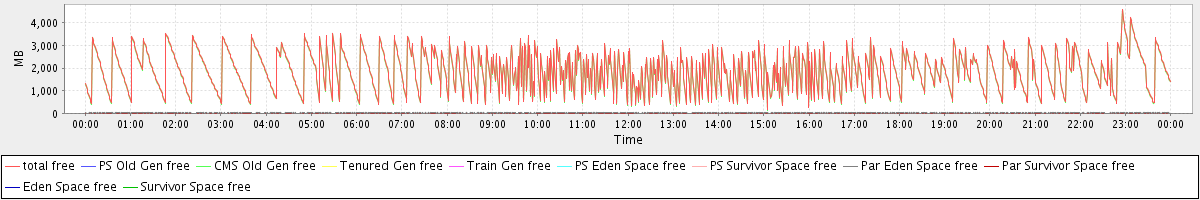 avg(total free) = 1879.95 avg(PS Old Gen free) = 0.00 avg(CMS Old Gen free) = 1857.97 avg(Tenured Gen free) = 0.00 avg(Train Gen free) = 0.00 avg(PS Eden Space free) = 0.00 avg(PS Survivor Space free) = 0.00 avg(Par Eden Space free) = 21.92 avg(Par Survivor Space free) = 0.06 avg(Eden Space free) = 0.00 avg(Survivor Space free) = 0.00
