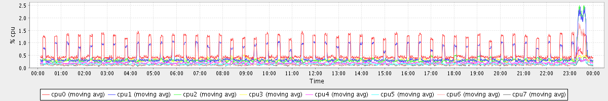 avg(cpu0) = 0.00 avg(cpu1) = 0.00 avg(cpu2) = 0.00 avg(cpu3) = 0.00 avg(cpu4) = 0.00 avg(cpu5) = 0.00 avg(cpu6) = 0.00 avg(cpu7) = 0.00