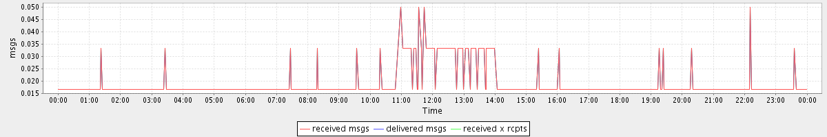 avg(received msgs) = 0.01 avg(delivered msgs) = 0.01 avg(received x rcpts) = 0.01