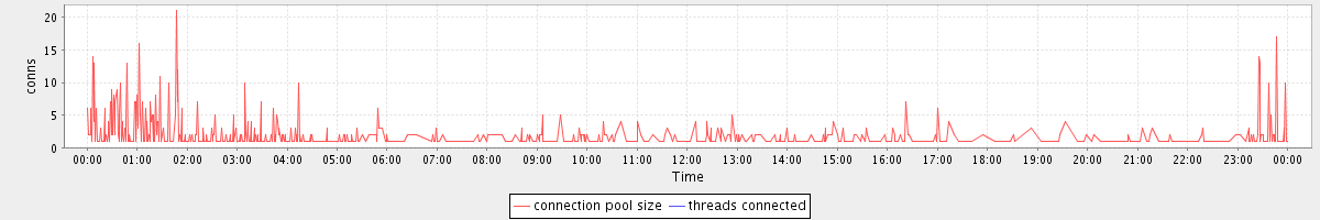avg(connection pool size) = 0.94 avg(threads connected) = 0.00