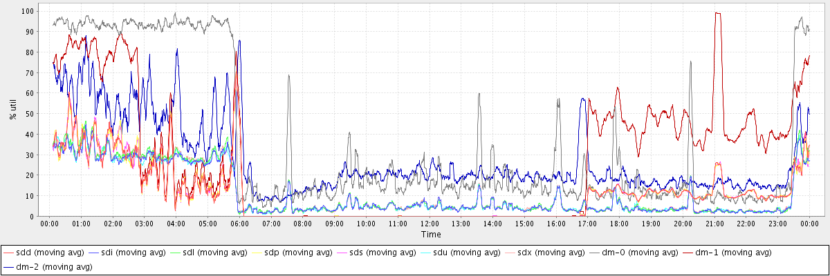avg(sdd) = 10.74 avg(sdi) = 10.99 avg(sdl) = 11.33 avg(sdp) = 10.77 avg(sds) = 10.77 avg(sdu) = 11.01 avg(sdx) = 11.21 avg(dm-0) = 36.11 avg(dm-1) = 26.79 avg(dm-2) = 27.70