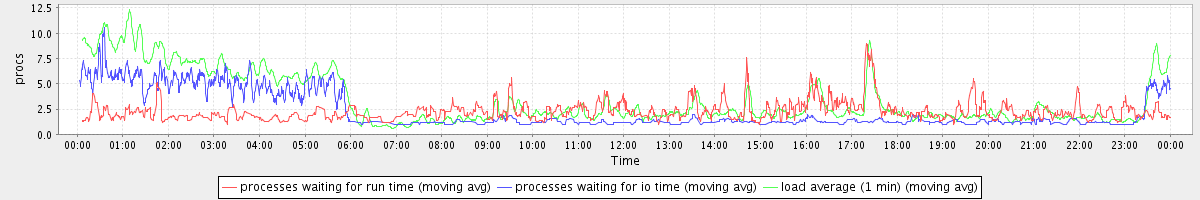 avg(processes waiting for run time) = 1.40 avg(processes waiting for io time) = 1.67 avg(load average (1 min)) = 3.42