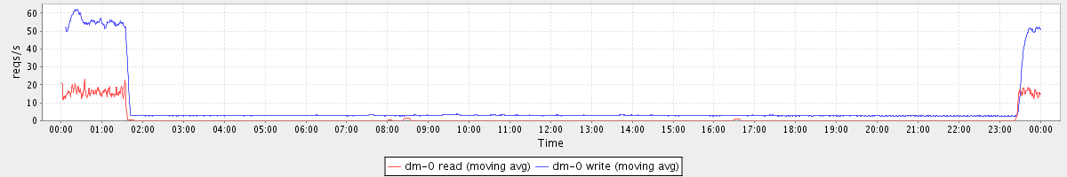 avg(dm-1 read) = 663.28 avg(dm-1 write) = 0.72