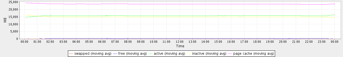 avg(swapped) = 0.25 avg(free) = 307.58 avg(active) = 15778.79 avg(inactive) = 15024.93 avg(page cache) = 23728.68