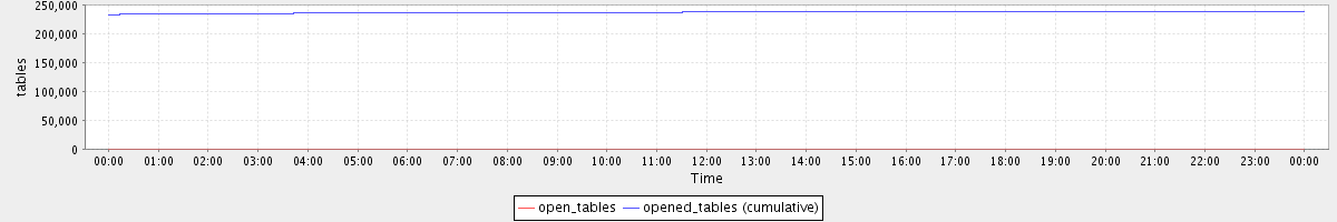 avg(open_tables) = 397.00 avg(opened_tables (cumulative)) = 237786.35