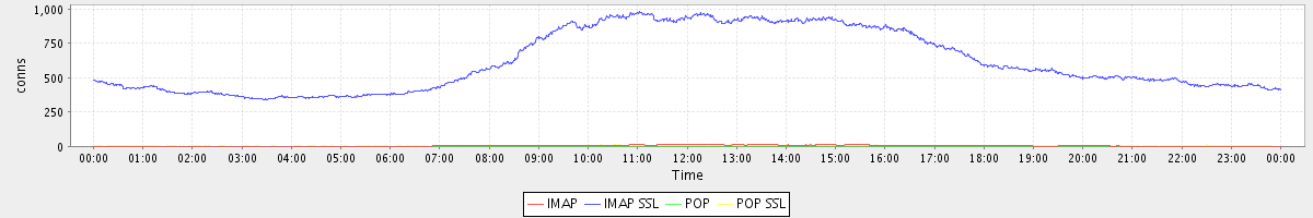 Host zm04.stanford.edu: Mailboxd: Active Connections by Client Protocol