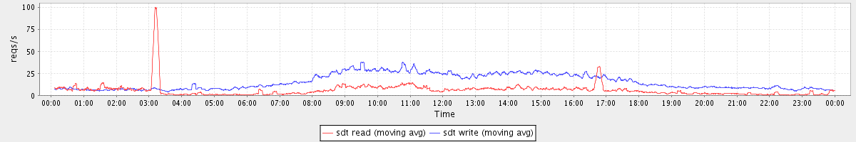 avg(sda1 read) = 19.28 avg(sda1 write) = 41.69