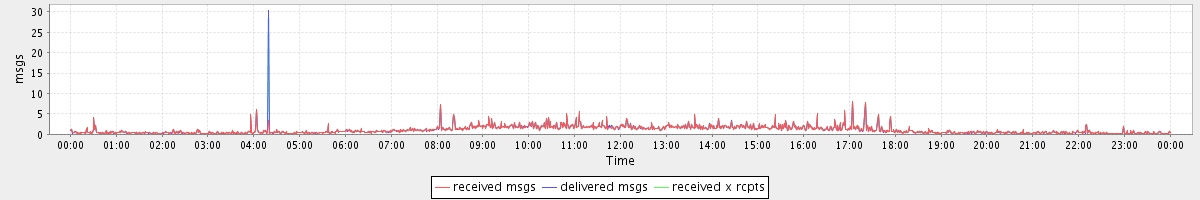 avg(received msgs) = 1.08 avg(delivered msgs) = 1.09 avg(received x rcpts) = 1.10