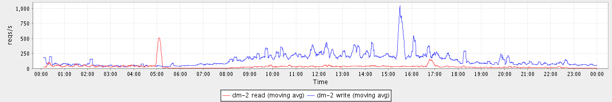 avg(dm-1 read) = 24.18 avg(dm-1 write) = 562.65