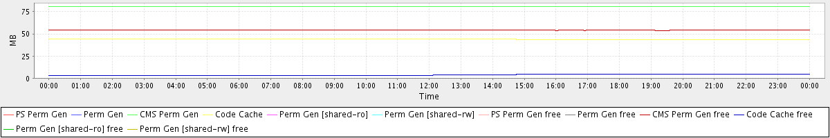 avg(PS Perm Gen) = 0.00 avg(Perm Gen) = 0.00 avg(CMS Perm Gen) = 80.89 avg(Code Cache) = 43.88 avg(Perm Gen [shared-ro]) = 0.00 avg(Perm Gen [shared-rw]) = 0.00 avg(PS Perm Gen free) = 0.00 avg(Perm Gen free) = 0.00 avg(CMS Perm Gen free) = 54.15 avg(Code Cache free) = 3.74 avg(Perm Gen [shared-ro] free) = 0.00 avg(Perm Gen [shared-rw] free) = 0.00