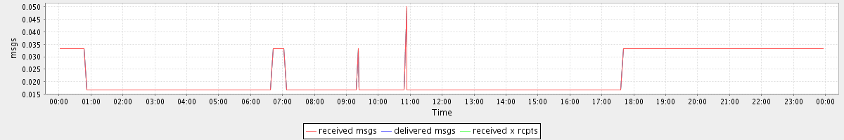 avg(received msgs) = 0.01 avg(delivered msgs) = 0.01 avg(received x rcpts) = 0.01